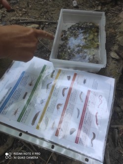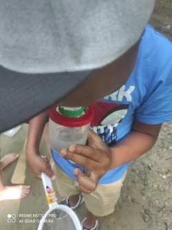 Nous avons observé l’eau de la rivière du Flon et cherché les invertébrés afin de voir la pollution de la rivière. C’est assez pollué.