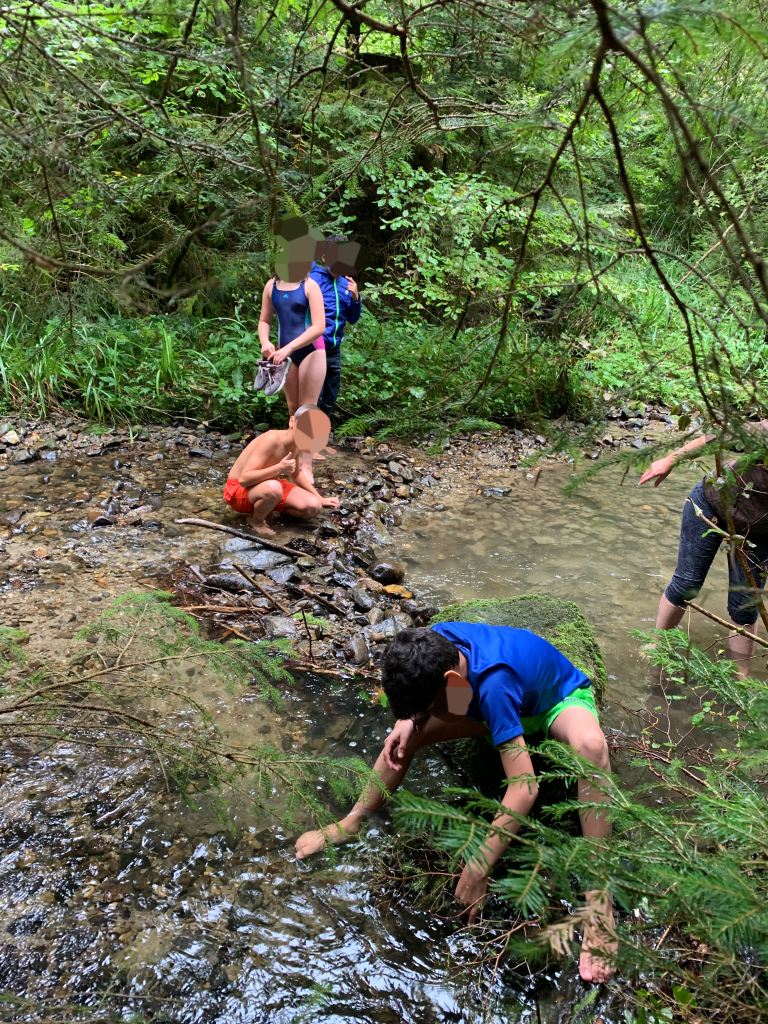 Nous sommes partis en promenade le long du Talent à la recherche des traces du castor. Nous avons vu des barrages, des toboggans, des troncs rongés. Nous avons même pu construire des barrages dans la rivière.