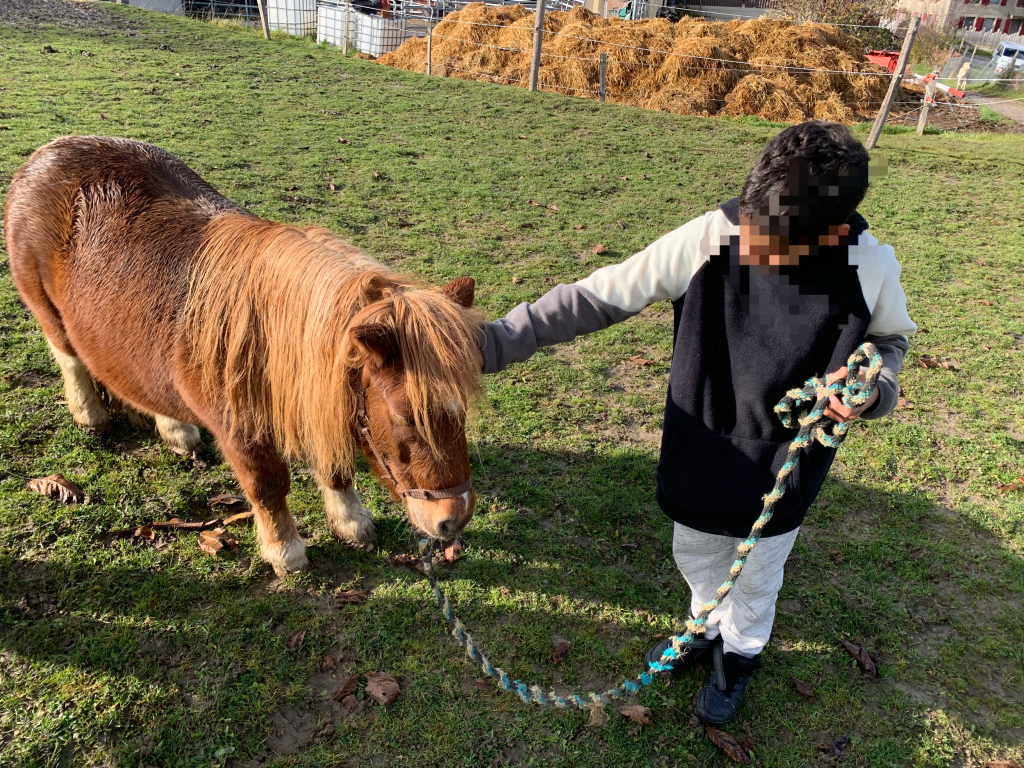 Nous avons brossé les poneys et nous leur avons préparé un petit parcours dans le manège. Ils ont du faire des sauts d’obstacles.