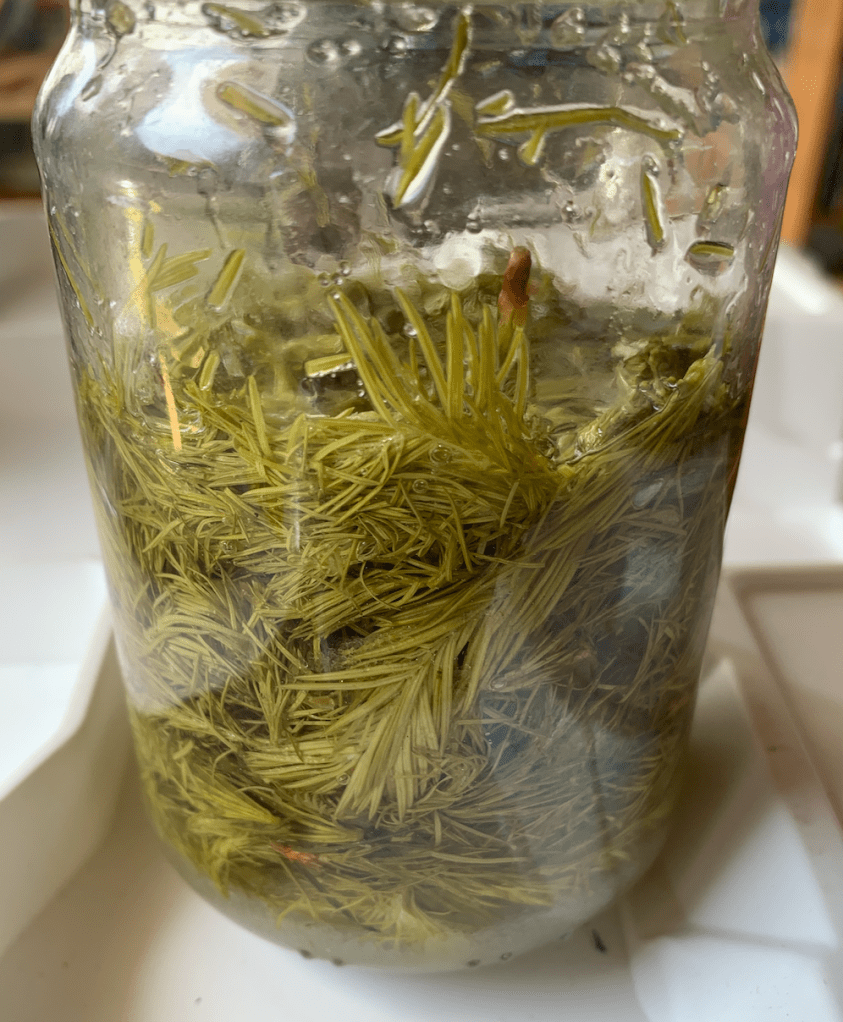pour la toux (la recette c’est 200g de bourgeons d’épicéa/ 200g de sucre blanc le jus de 1 citron )