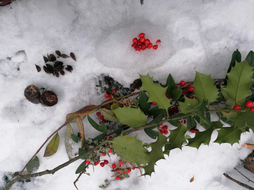 LORS DE LA SORITE EN FORET, ON A FAIT UN DESSIN AVEC DES ENCRES DE COULEUR DANS LA NEIGE.