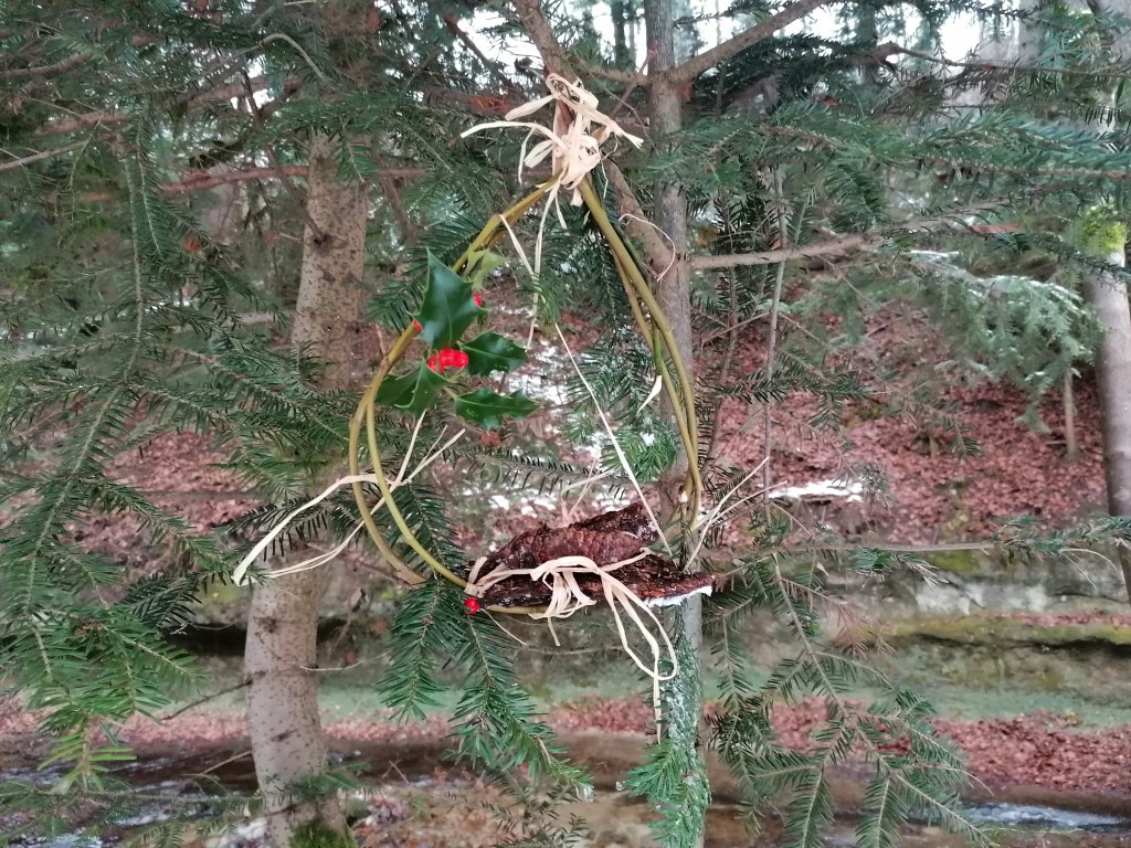 Nous avons construit des mangeoires à oiseaux. Ils mangent des graines et des fruits.